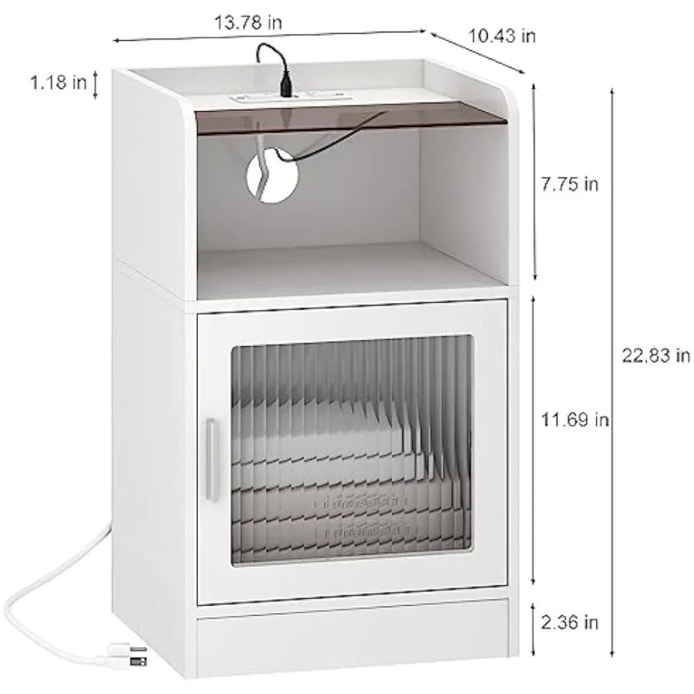 Round Side Table, Small Nightstand with Fabric Basket, Modern Nightstand for Living Room, Bedroom, Nursery, Black&Grey
